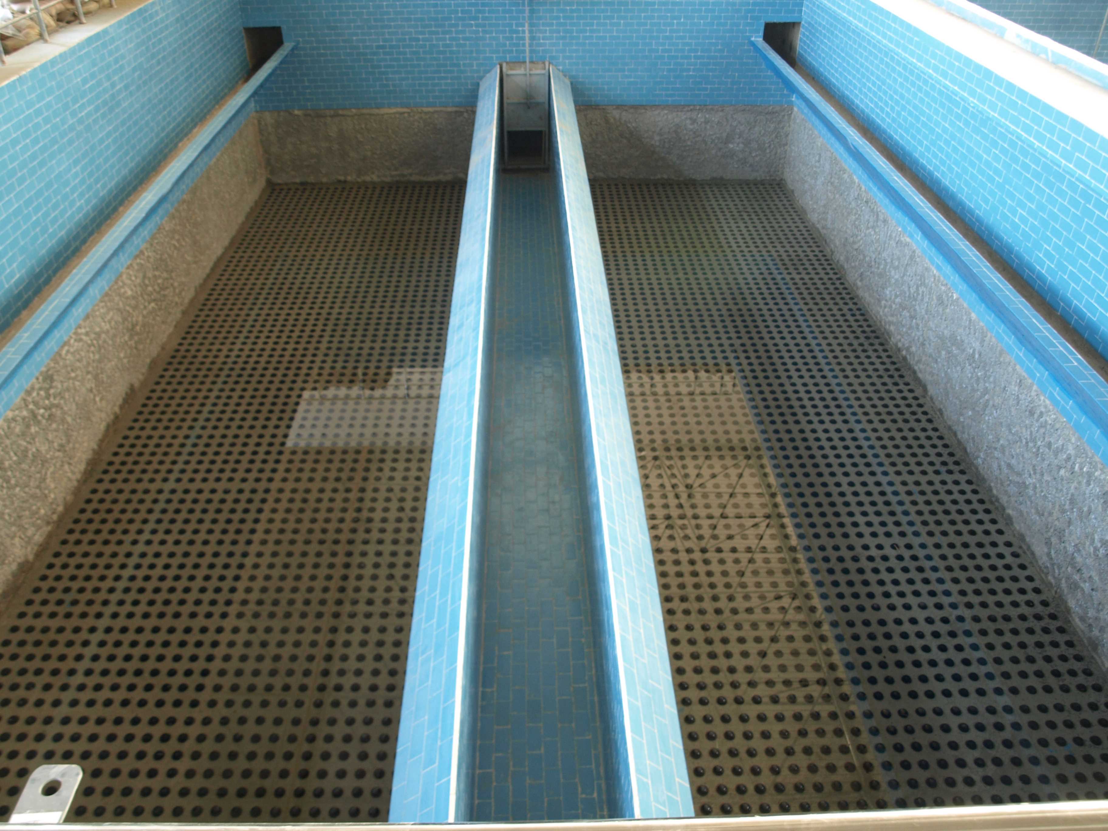 V型滤池是快滤池的一种形式,因为其进水槽形状呈V字形而得名,也叫均粒滤料滤池(其滤料采用均质滤料,即均粒径滤料)、六阀滤池(各种管路上有六个主要阀门)。它是我国于20世纪80年代末从法国Degremont公司引进的技术。
