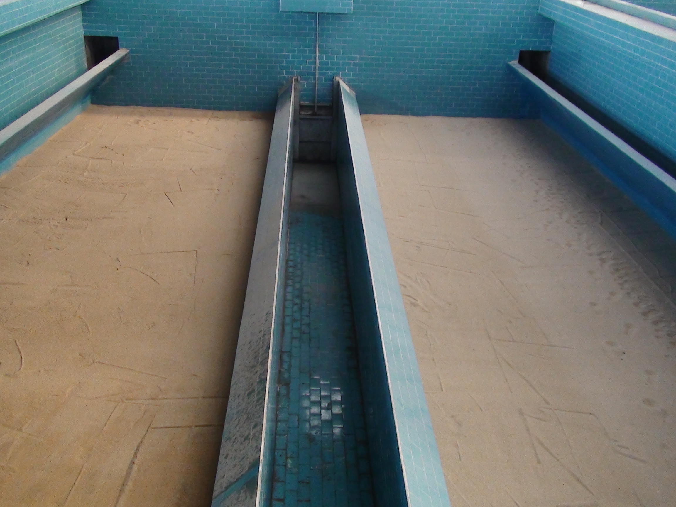 气水同时反冲洗:在气冲的同时启动冲洗水泵,打开冲洗水阀门,反冲洗水也进入气水主分配渠,经下部配水窗流入滤池底部配水区,同反洗空气同时经长柄滤头均匀进入滤池,滤料得到进一步冲洗,表面漂洗依然继续进行。